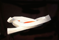 Wie beim "Vogelschiff" geschah die Übertragung der zeichnerisch definierten Punkte in die drei Dimensionen mit einer Art "Käfig", einem Eisengestell mit Schlitten und Stangen, die es ermöglichten, an jeden Punkt der Skulptur nach Massgabe seiner Raumkoordinaten (x,y,z) heranzufahren, millimetergenau .